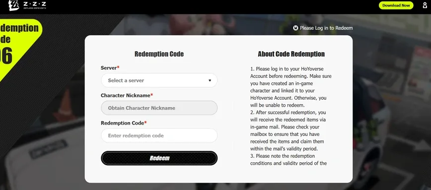 - Vai al sito web ufficiale del codice di riscatto Zenless Zone Zero.