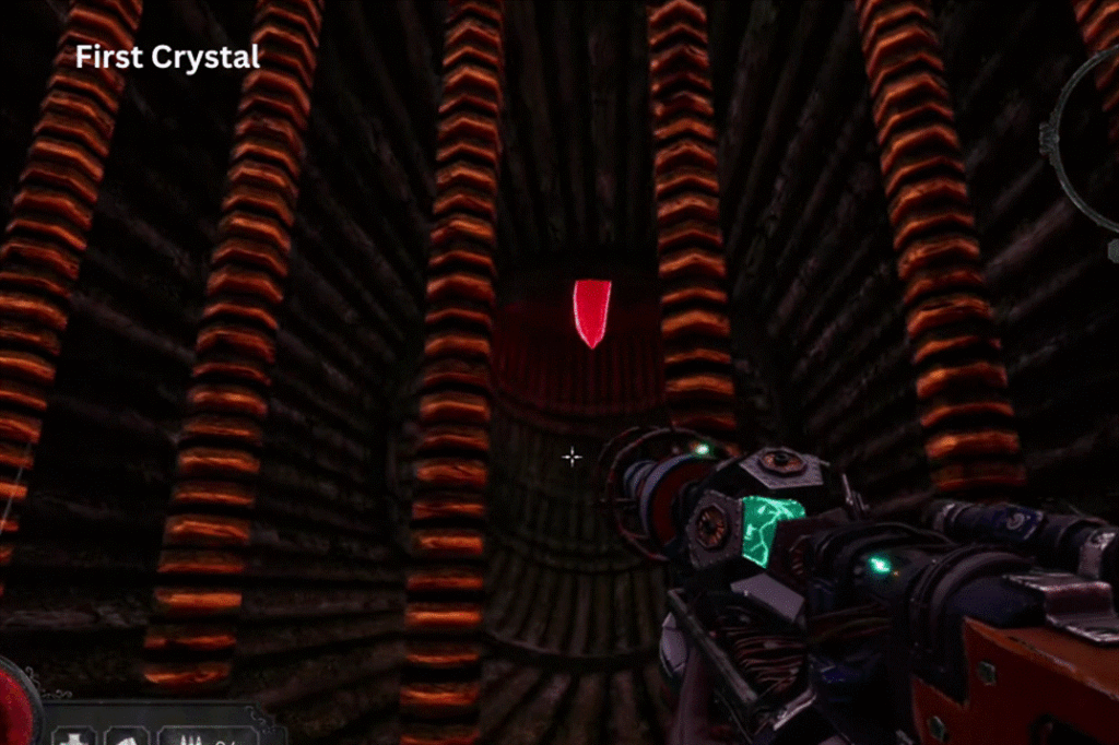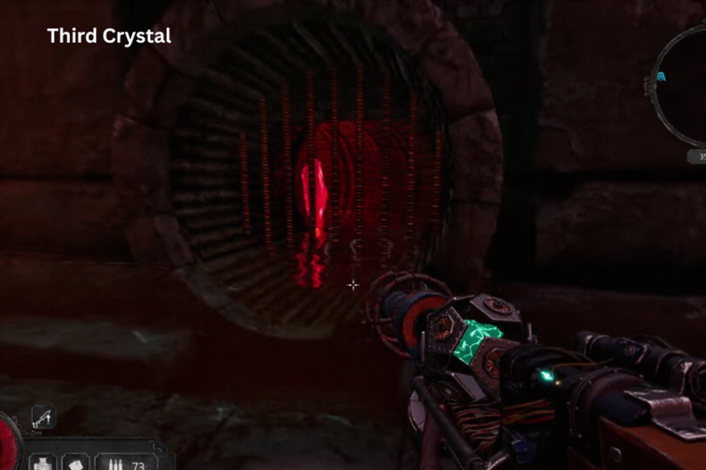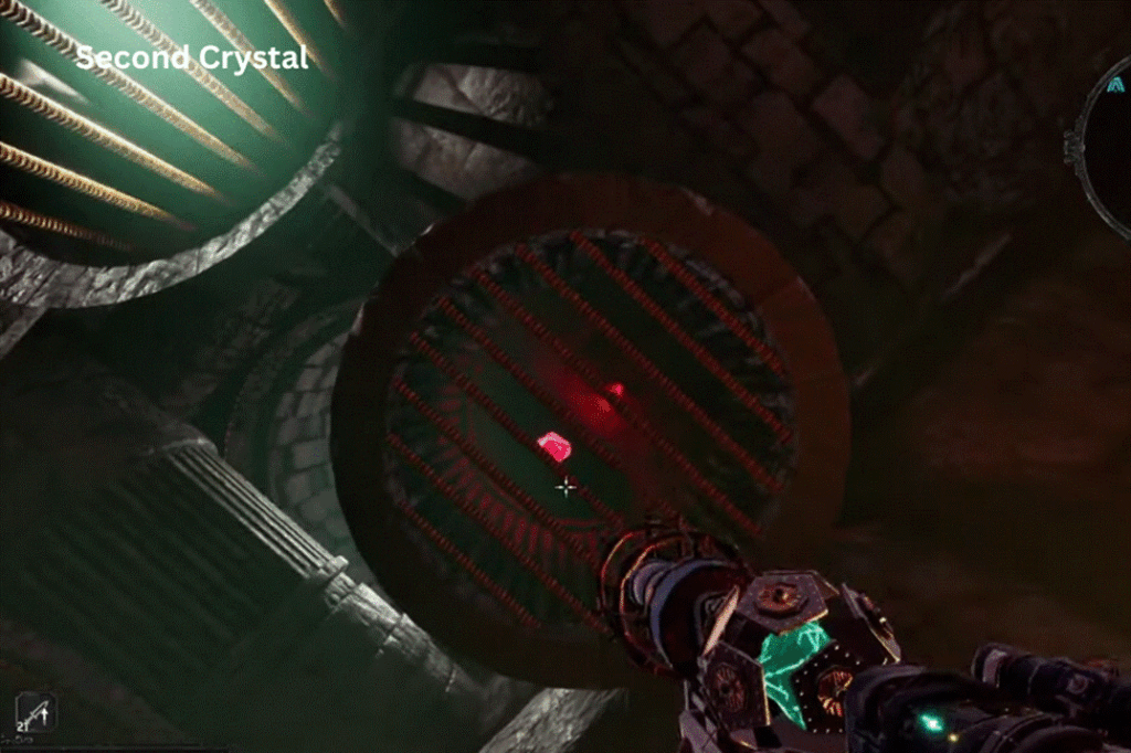 Il primo è nascosto un po’ a sinistra della porta rossa dietro una grata. Guarda in alto per vedere il secondo cristallo nella griglia superiore. Il terzo cristallo è a destra, nel profondo di un’altra grata, vicino ad un piccolo stagno. Il quarto, infine, viene posto in una grata verticale accanto al tunnel di uscita.