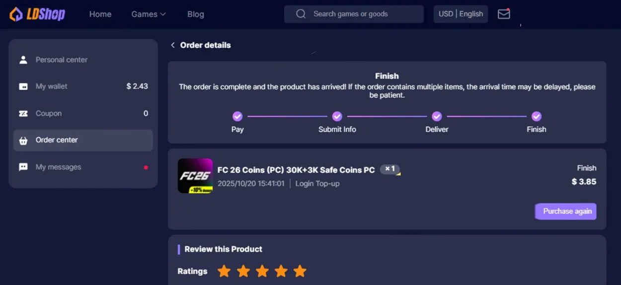 - Un sistema completamente verificato e sicuro: LDShop utilizza solo fonti di monete verificate e legittime. Ciò garantisce che tutte le tue monete seguano standard sicuri e una gestione professionale. Il loro sistema è interamente basato sulla coerenza e sull’affidabilità. Tutto, dall’approvvigionamento delle monete al flusso di lavoro commerciale, è organizzato pensando alla sicurezza del tuo account.
