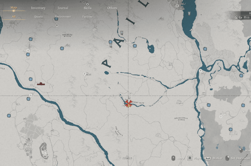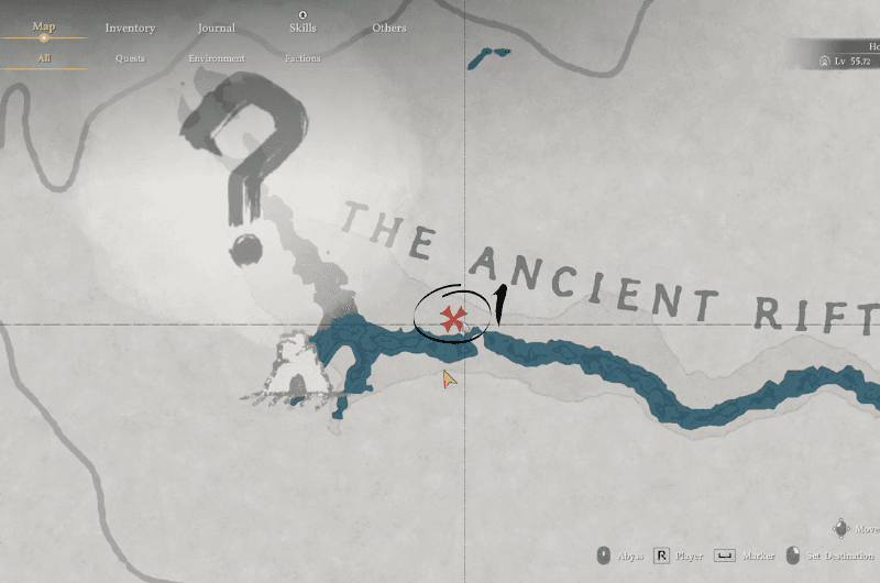 Adesso avvicinati al punto interrogativo che appare sulla mappa, entrerai nell’area della sfida del labirinto. Puoi vedere che ci sono 3 slotdovresti inserire le 3 pietre incise che hai raccolto. Questo completerà il Sfida del labirinto dell’antica spaccatura e puoi ritirare il Artefatto dell’Abisso.