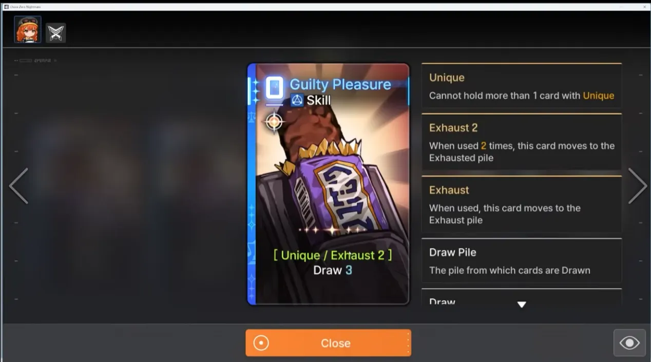 Piacere colpevole (costo 0): (Consumare) Pesca 3 carte immediatamente dopo l’uso, poi questa carta viene consumata. La sua potente capacità di pescare le carte aiuta a scorrere rapidamente il mazzo per cercare le abilità chiave.