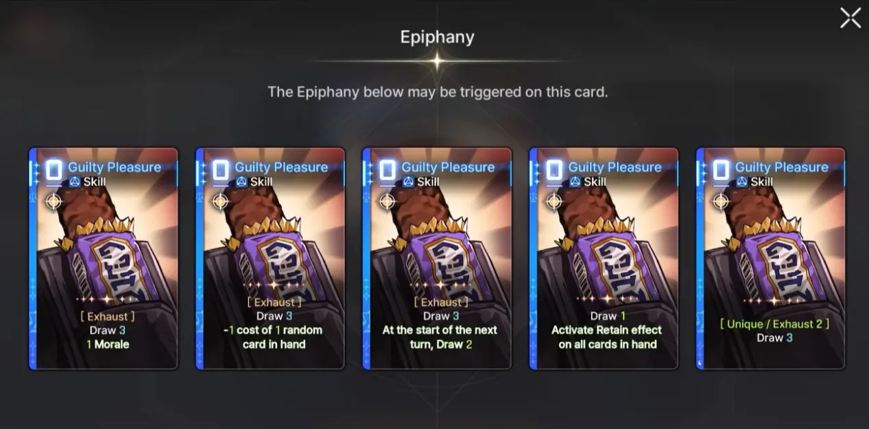 - Piacere colpevole: scegli le scintille che prevengono il consumo, forniscono pesca di carte extra o riducono i costi di altre carte. Ciò consente un ciclo del mazzo più fluido e un assemblaggio più rapido delle combinazioni di carte chiave.