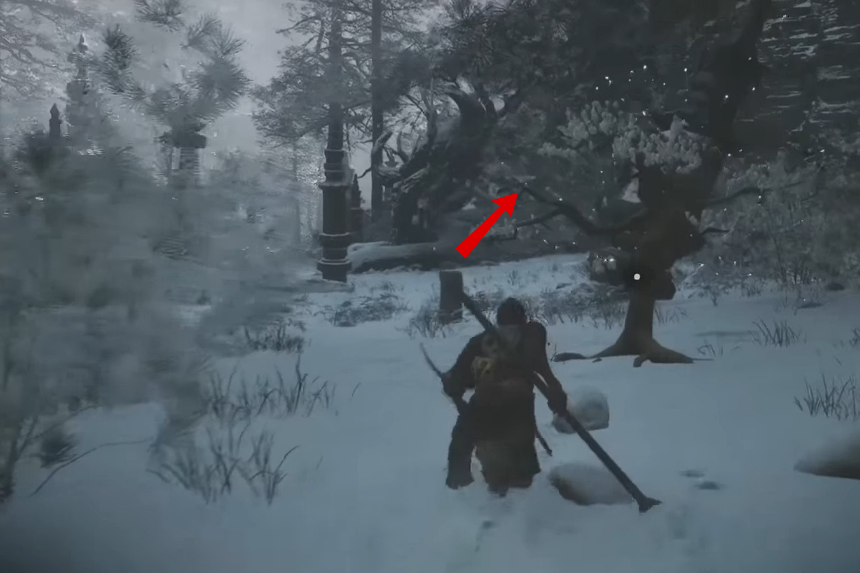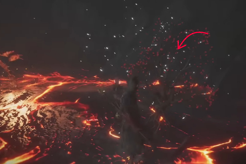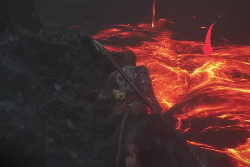 Capitolo 5, Campo di fuoco (Ashen Pass III). Un grande fungo rosso cresce sul lato destro del santuario. Tirandolo fuori si avvia l’incontro con il boss Nine-Capped Lingzhi Guai. Come per gli altri boss nascosti, il seme caduto contribuisce con due voci al totale.