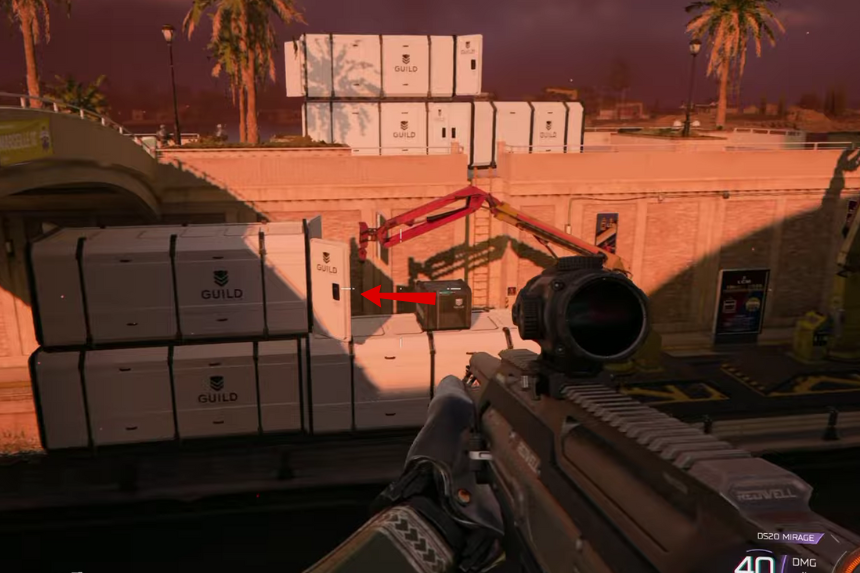 Mentre ti dirigi verso lo stadio, il tuo prossimo obiettivo sarà quello di disabilitare diverse spedizioni di culle. Quando ti avvicini, gli indicatori di missione si divideranno in sei punti diversi. Non disabilitarli ancora. Posizionati sul ponte orientale vicino allo stadio e guarda in basso verso la gru e i container vicini. Scendi sulla cassa di spedizione accanto alla gru ed entra nel container della Gilda. All’interno si trovano due scatole e tra di loro c’è l’intelligence Trigger Finger.