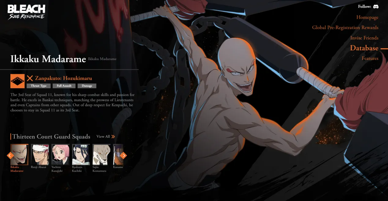 Un personaggio di supporto che funge da affidabile “rete di sicurezza” fornendo forti scudi che proteggono se stesso e si trasferiscono agli alleati che cambiano. La sua abilità di campo di battaglia non costa energia, viene attivata dalle combo finali o dall’uso della tecnica, e si abbina bene con attaccanti veloci come Yoruichi. Sebbene il suo danno personale sia inferiore al previsto, aumenta efficacemente la sopravvivenza della squadra.