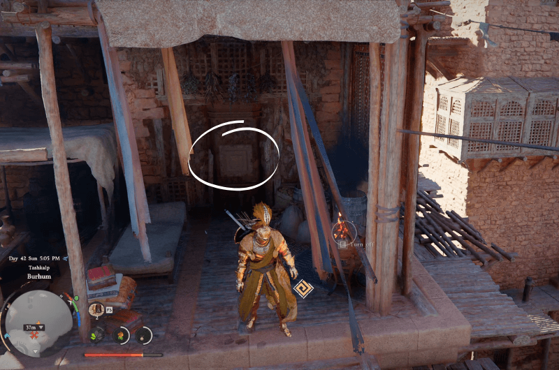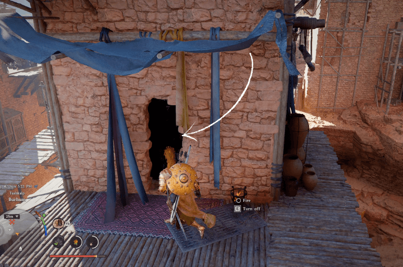 Questo labirinto si trova nella città di Burhum nel Deserto Cremisi regione, che è occupata da un nemico fazione. Puoi provare a completare la sfida del labirinto ignorando i nemici, ma consiglierei di eliminarli prima perché lo hanno fatto armi da fuoco e questi edifici hanno sporgenze strette quindi è molto fastidioso cercare di trovare le pietre incise rimanendo di guardia.