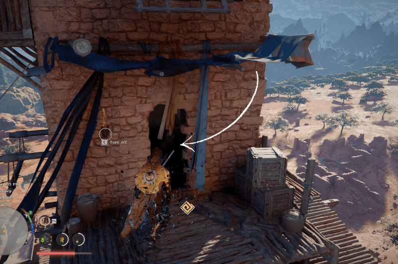 Raggiungi il livello superiore dalla prima pietra e cerca l’ingresso mostrato nell’immagine sopra, entra all’interno e vedrai il grande pulsante alla tua destra. Usa il palmo della forza abilità e raccogliere il pietra incisa.