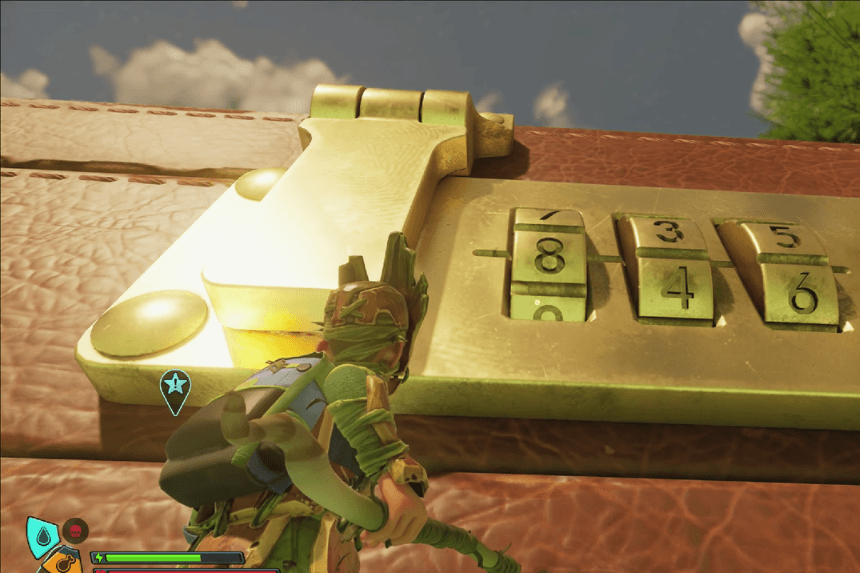 Una volta in cima, ti imbatterai in una valigetta chiusa a chiave. Ora, tecnicamente, la combinazione è scritta da qualche parte sul tavolo se vuoi trovarla tu stesso. La combinazione della serratura di sinistra è 137 e quella di destra è 514. All’interno della valigetta troverai una bella scorta di gadget: ci sono 500 Raw Science, alcune mentine fresche, un mix di caramelle piccanti e acide e persino un molare di latte che ti aspetta.