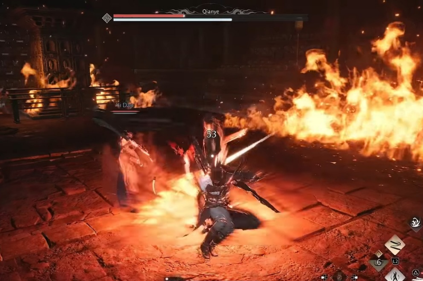 Una volta che la sua salute nella seconda fase raggiunge circa i tre quarti, Qianye scambia di posto con il suo riflesso ed entra in una variante in forma bianca. Da questo momento in poi, i tuoi HP si ridurranno costantemente. Mantenere la sua pressione lontana da te non è sufficiente: devi attaccare attivamente e deviare per recuperare la salute perduta.