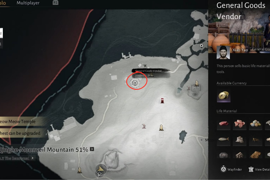 Una volta arrivato nel luogo mostrato nell’immagine della mappa sopra, dovrai parlare con Wu Caifeng per attivare la missione. Mentre parli con lui, ti chiederà di portargli un oggetto curativo; il nome dell’articolo è polvere emostatica. Durante la conversazione iniziale le cose non ti saranno subito chiare quindi dovrai parlare nuovamente con lui e comprendere la situazione per sbloccare l’opzione.