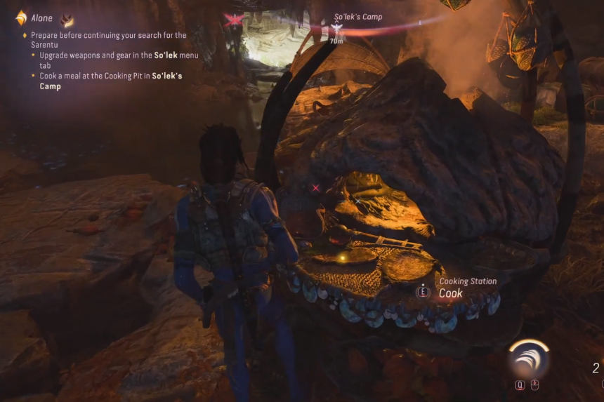 Quando raggiungi il campo di Solek, devi cercare Sarentu. Prima di partire per il viaggio, devi cucinare un pasto nella fossa di cottura dell’accampamento di Solek. Nell’accampamento di Solek troverai un materassino per riposare. Ciò ti garantirà un ulteriore segmento di salute temporaneo. I segmenti di salute aggiuntivi scompariranno quando subisci danni. La fossa per cucinare è vicino all’ingresso del campo.