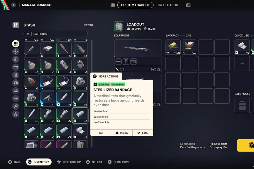 - Ordina per priorità: tieni munizioni, kit medici e granate nella prima pagina dell’inventario per un rapido accesso in combattimento.