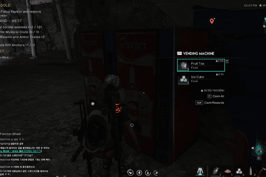 Puoi trovare facilmente cubetti di ghiaccio nei distributori automatici situati in tutta la parte orientale e occidentale di Wishland. Con oltre 30 distributori automatici in tutta l’area, è facile prendere una borsa del ghiaccio ogni volta che ne hai bisogno. Per utilizzare il distributore automatico premere il tasto “F” per aprire il menù. Sul lato destro del menu vedrai quali elementi sono attualmente disponibili per essere rivendicati. Clicca sull’opzione “cubetti di ghiaccio” per acquistarli. Il prezzo dei cubetti di ghiaccio è stabilito dal giocatore che possiede il distributore automatico.