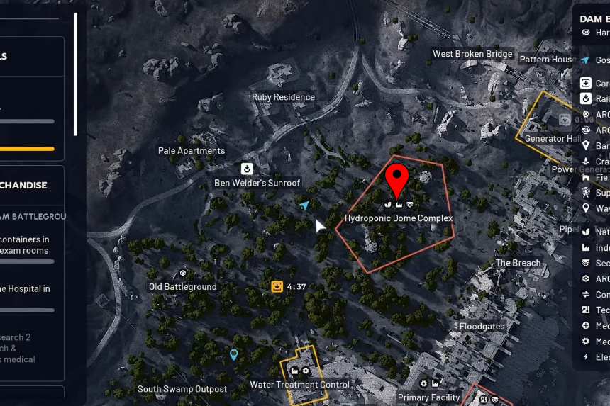 Se non hai fortuna con la corsa alla cupola, non dimenticare i bordi del fiume paludoso, il controllo del trattamento dell’acqua o il relitto all’interno dei campi di battaglia della diga, che generano anche funghi, ma non così spesso. È comunque una buona opzione se sei vicino.