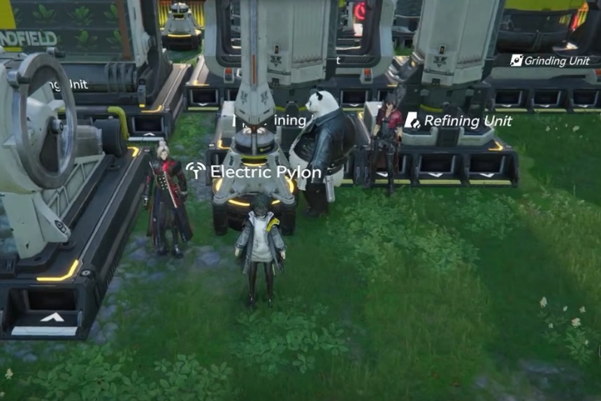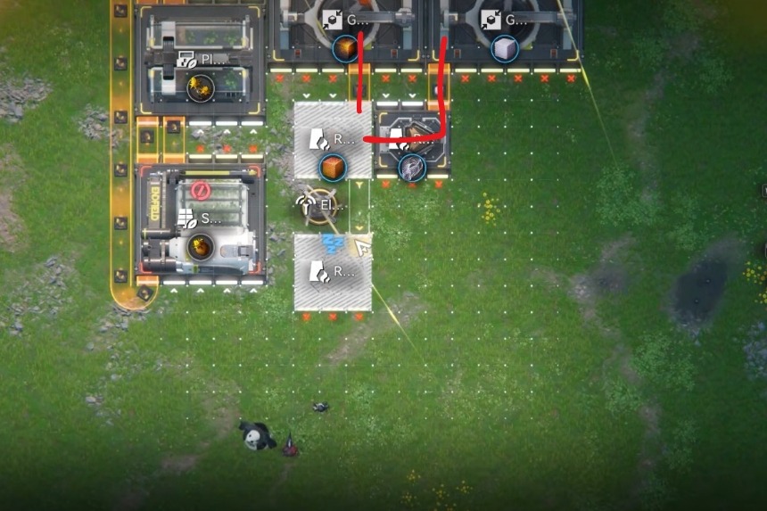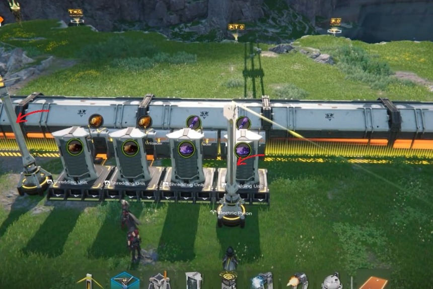 Infine, vorrai posizionare un Pilone Elettrico davanti alle tue Unità di Raffinazione, con un lato del Pilone Elettrico con una porta aperta. Ciò ti consentirà di fornire un’alimentazione elettrica costante alle tue unità di raffinazione.