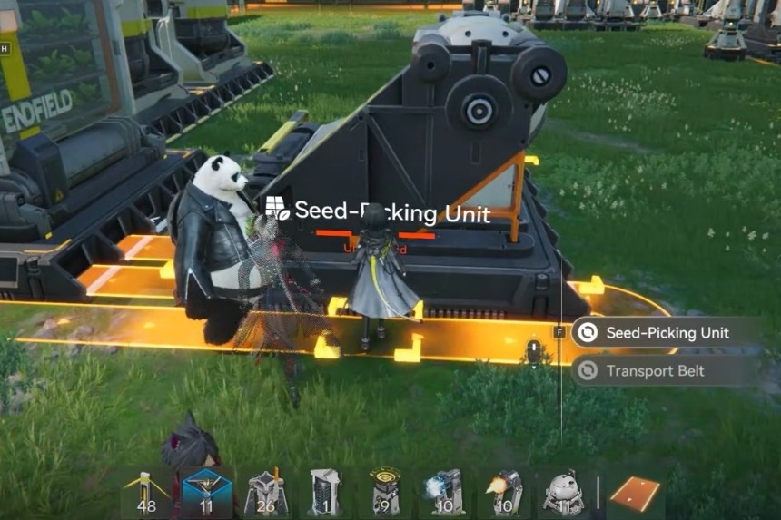 Successivamente, l’unità di raccolta dei semi deve essere posizionata da sinistra a destra con uno spazio di un blocco tra sé e l’unità di semina, quindi collegare entrambe queste unità utilizzando due linee di trasporto e creando un nastro trasportatore dall’unità di semina all’unità di raccolta dei semi.