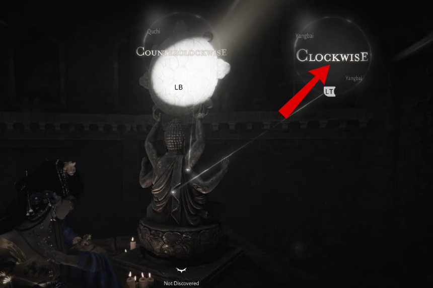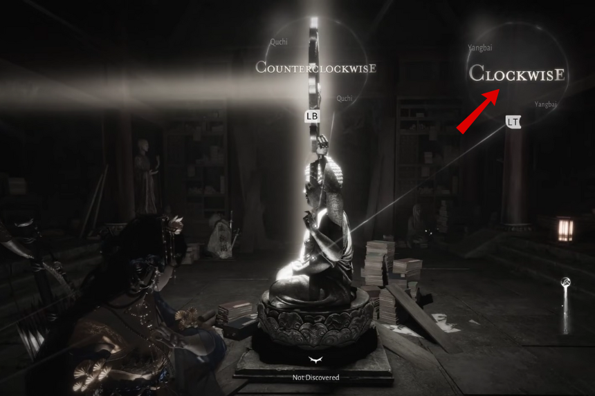 Usa Meridian Touch per ruotare la statua finché il suo raggio di luce non si allinea con il buco nel muro. Questo sblocca il percorso da seguire.