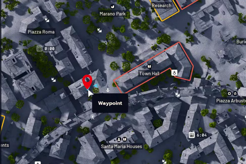 Andate in Piazza Arbusto. Qui troverete una torre. Salite sulla torre e spostatevi verso il bordo. Troverai il pulsante rosso proprio all’angolo della torre.