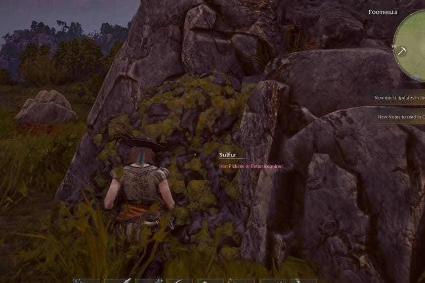 In Windrose, lo zolfo può essere estratto attraverso l’estrazione dei nodi di zolfo giallo che si generano nei biomi della giungla costiera e delle colline pedemontane, utilizzando un piccone di ferro per la sua estrazione. Tuttavia, il modo migliore per ottenerlo è esplorare queste aree dopo aver sbloccato la posizione Foothills o saccheggiare gli accampamenti dei pirati.