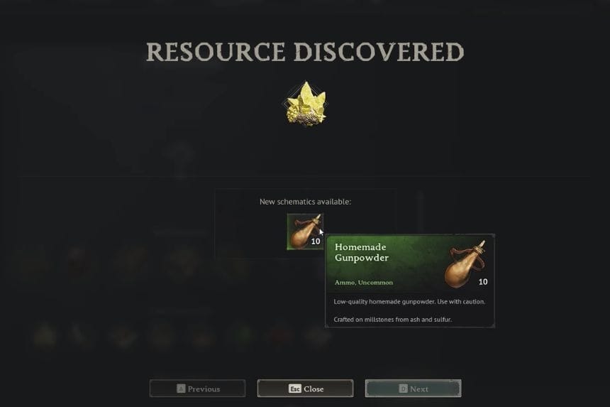 La polvere da sparo fatta in casa può essere prodotta con l’aiuto della funzione di creazione. Ci vorranno circa 45 secondi per crearlo e, una volta creato, riceverai 10 unità di polvere da sparo fatta in casa. Per questo avrai bisogno di 10 unità di zolfo e 20 unità di cenere.