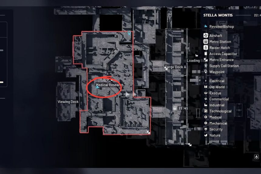 Nell’area Ricerca Medica, a Stella Montis, cerca le cassettiere mediche bianche. Saccheggia ogni cassetto. Qui troverai il contatore Geiger e il respiratore scaduto in uno dei cassetti. Entrambi sono oggetti molto comuni, quindi puoi ottenerli facilmente saccheggiando i cassetti.