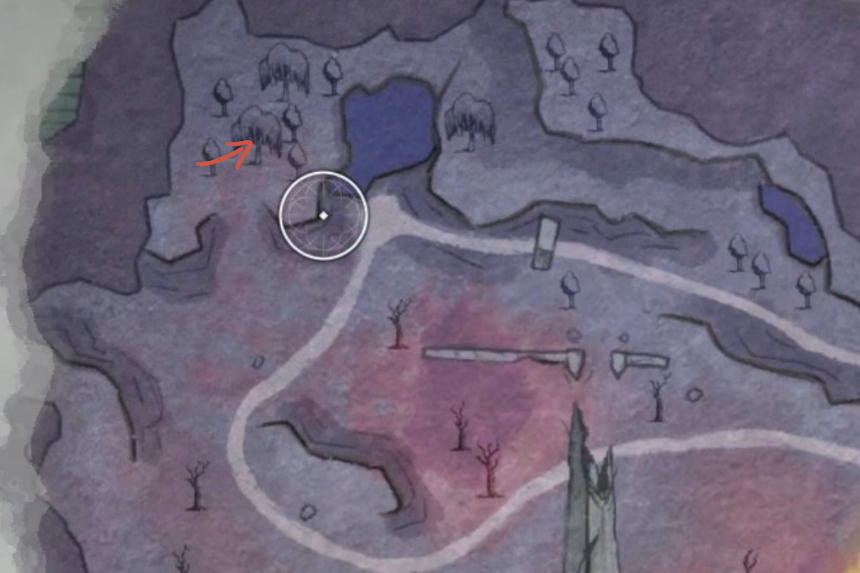 Dalla posizione dell’NPC, segui il percorso occidentale nella Witchwillow Range. Non ci sono boschetti a est, quindi non perdere tempo a cercare lì.