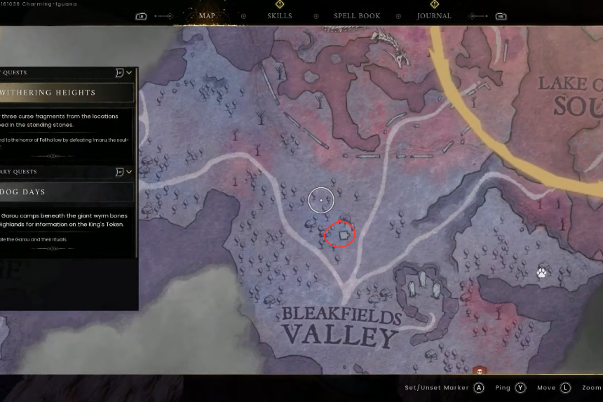 Quando arriverai a Fellhollow, entrerai nella regione di Bleakfields Valley. La mappa mostra tre principali percorsi diversi in questa posizione e vedrai anche le pietre erette situate qui che ti aiutano con la raccolta dei frammenti necessari per affrontare il boss del drago finale.