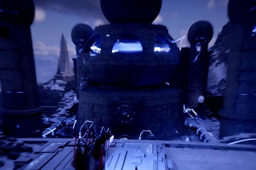 Dopo aver eliminato i nemici dal Santuario della Benedizione, scendi le scale. Le scale sono sulla piattaforma del puzzle. Di lato c’è una stanza. In questa stanza troverai un cubo. Usa la mano Axiom per tirare fuori il cubo dalla stanza e trascinarlo sulla piattaforma del puzzle. Quindi rilascia il cubo sulla piattaforma del puzzle dove vedi l’effetto foglia verde. Successivamente, usa il Force Palm per spingere il cubo nel puzzle.