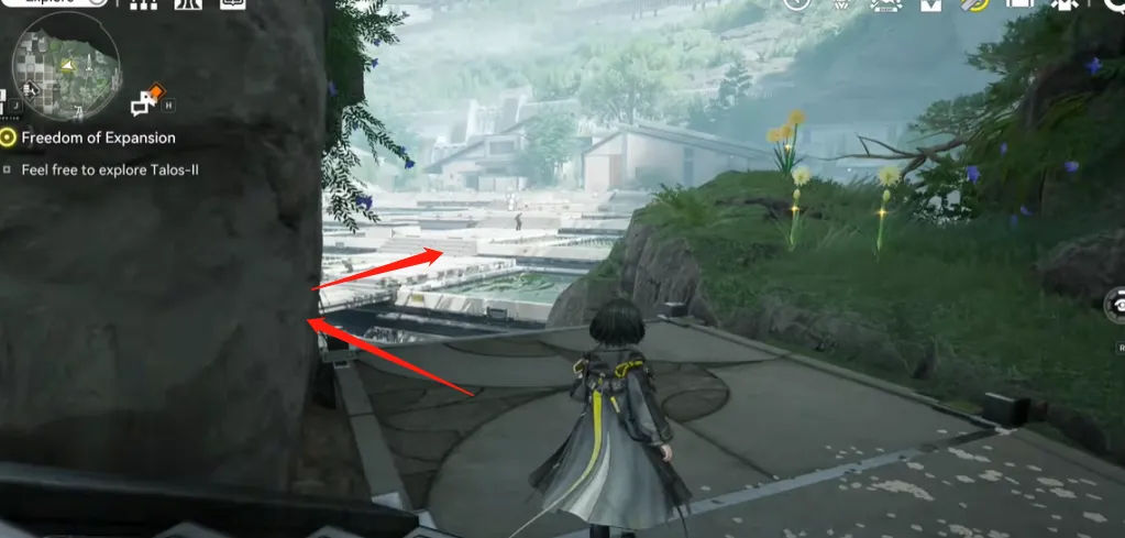 4.Una volta atterrato dall’altra parte, rimani vicino al muro di pietra alla tua sinistra e continua ad avanzare lungo esso.