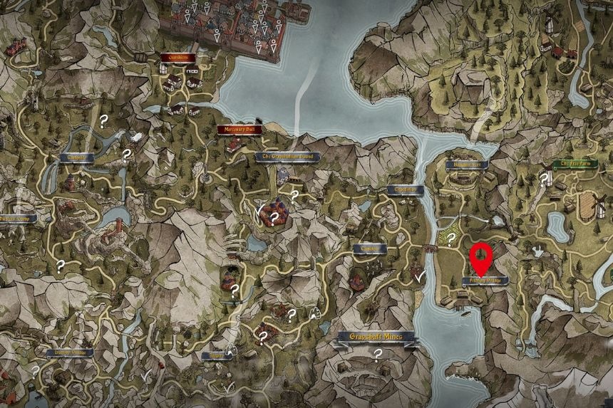 - Cyril viene trovato in un campo. Dalla taverna seguire la strada principale e attraversare il ponte. Girare a sinistra e raggiungere l’accampamento. Di solito si trova vicino al falò.