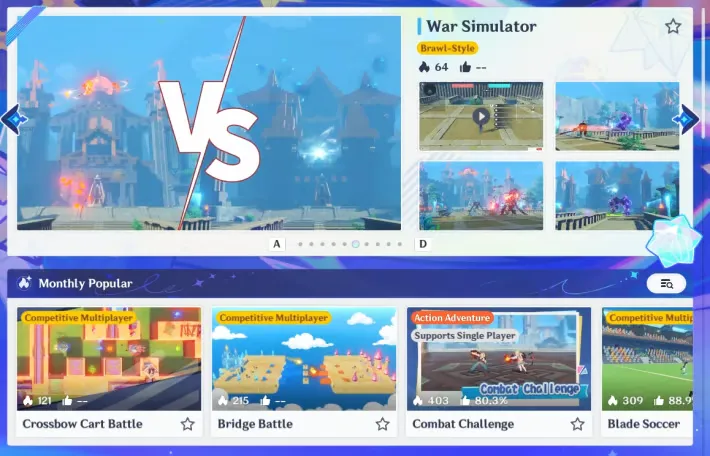 Poiché Miliastra Wonderland supporta i giochi generati dagli utenti, molti giocatori hanno creato livelli a completamento rapido progettati specificamente per guadagni rapidi di XP. Queste fasi della “fattoria XP” offrono vincite quasi istantanee, rendendole uno dei modi più veloci per aumentare il tuo livello nel Paese delle Meraviglie. Puoi trovarli facilmente andando alla scheda Tutto il Paese delle Meraviglie e cercando parole chiave come “XP farm”.