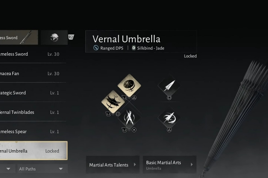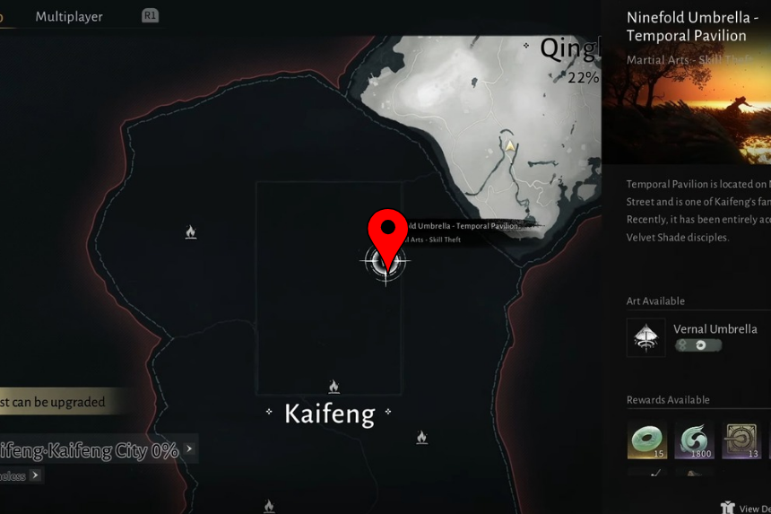Quando esaminerai l’oggetto ombrello nel tuo inventario, vedrai che il gioco ti chiede di attivare il talento nelle arti marziali o le arti marziali di base. Quello che dovrai fare qui è fare clic su Martial Arts Talent e ti condurrà a un luogo di missione il cui nome è Ninefold Umbrella. L’area apparirà piuttosto scura sulla mappa ma non preoccuparti, potrai comunque accedervi con facilità.