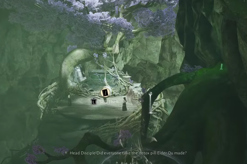 Dopo aver preso l’ultimo scrigno, dirigiti verso il corridoio illuminato di fronte a te. All’interno troverai il Maestro. Se applichi il tuo furto di abilità su di lui, imparerai l’arte marziale dell’ombrello Soulshade.