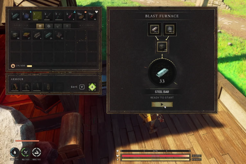 L’altoforno converte le barre di ferro in barre di acciaio. Uno degli scopi principali dell’acciaio è il suo utilizzo per lanciare equipaggiamento di livello 5, necessario per combattere nemici potenti e scavare nelle aree di livello 5 senza problemi. Con tutti gli oggetti in mano, puoi sbloccare facilmente strumenti ed equipaggiamenti di livello 5 dall’altoforno.