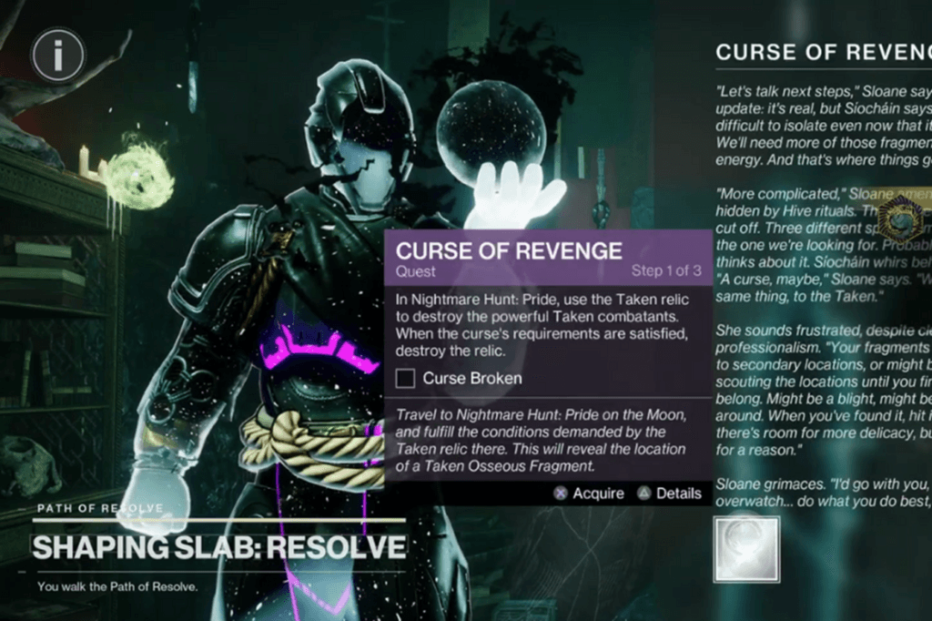 La terza e ultima missione Maledizione ti porta alla Caccia all’incubo: Pride on the Moon. Ignora l’indicatore della mappa per questo; è un vicolo cieco. Avvia invece l’attività direttamente dalla directory. Troverai il potenziamento dei corrotti nell’ultima stanza dell’incontro. Elimina il boss e gli altri nemici e finirai l’ultimo passaggio della missione.