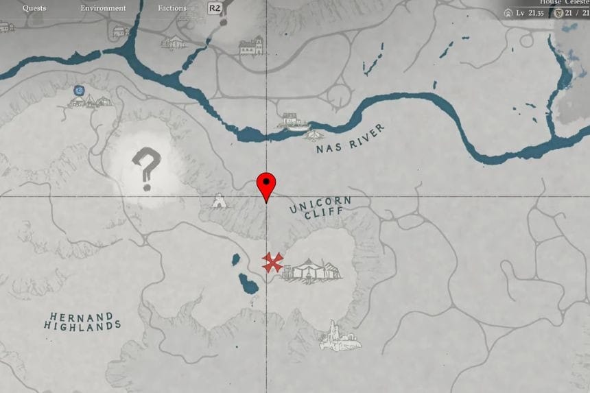 Per prima cosa, dovrai cercare un poster di taglie. Puoi trovarli quasi ovunque sulla mappa; tuttavia, non si verificheranno spawn ripetuti nello stesso sito. Dopo aver raccolto il poster, noterai che segna la posizione di Blix sulla tua mappa. Si trova a Unicorn Cliff, a sud del fiume Nos.