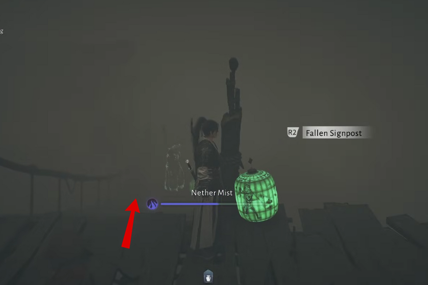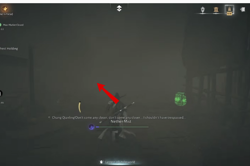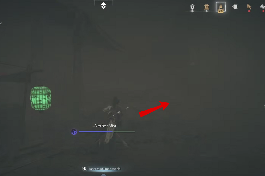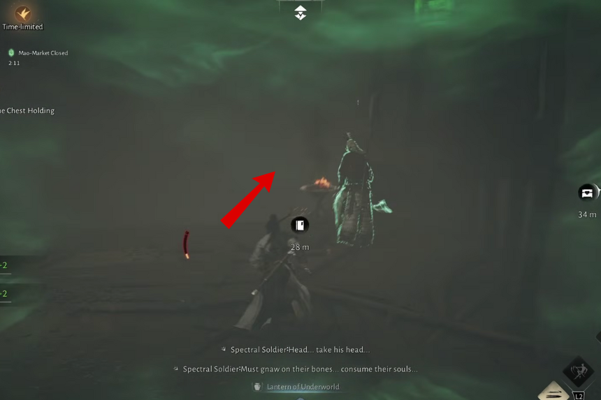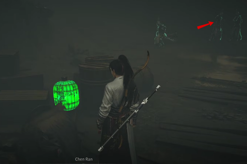 Una volta salita la seconda scala, gira a sinistra e continua a correre dritto. Attraverserai un ponte dove un Soldato Spettrale sta facendo la guardia. Subito dopo il ponte, vedrai un’altra lanterna con un uomo di nome Xiang Gutong in piedi accanto ad essa.