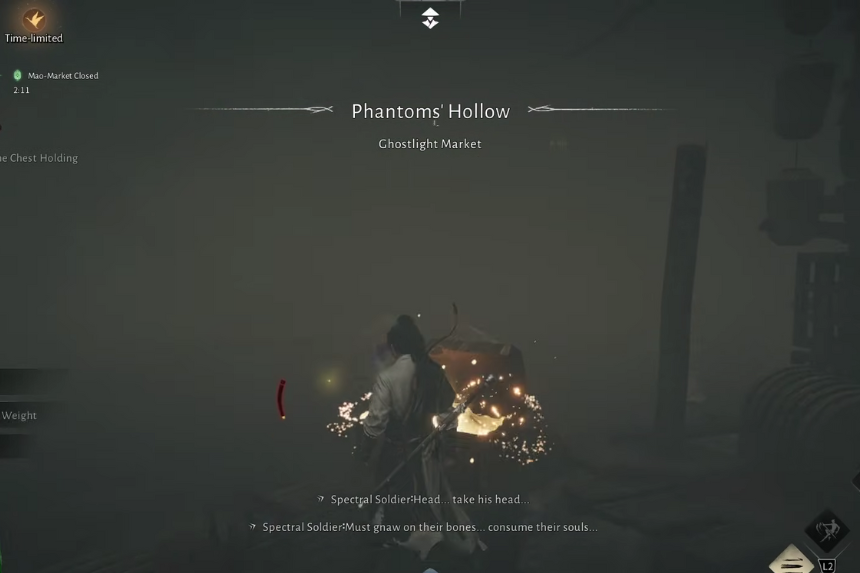 Per iniziare la tua avventura nel regno spettrale, vai al mercato di Ghostlight. Cerca Liu Changsheng vicino alle scale che conducono al sentiero principale. Parla con lui e ti aggiornerà su cosa sta succedendo. Ti chiederà quindi di raccogliere tre oggetti importanti da uno spirito perduto: un pezzo di armatura, un elmo e una lancia.