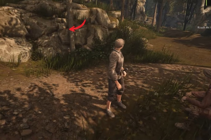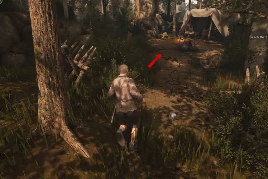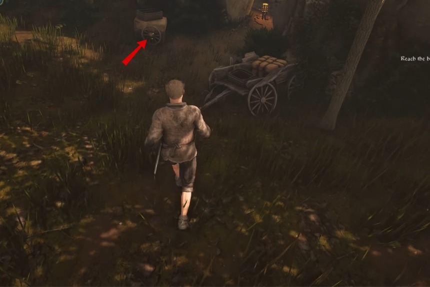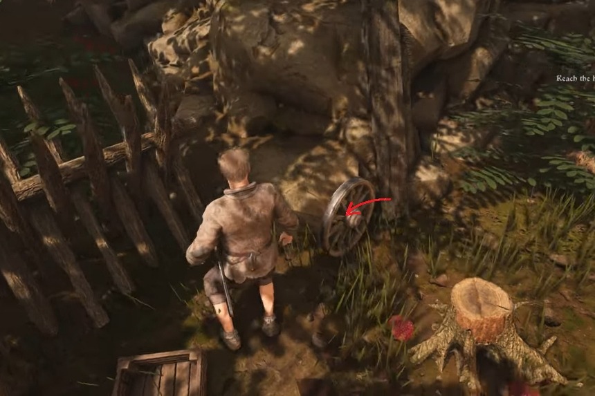 Per prendere la seconda ruota, inizia dalla posizione di Radim e vai verso l’accampamento degli Hobster che sarà dietro di te. Attraversa il bosco tenendo la sinistra e alla fine incontrerai l’accampamento. La ruota si trovava appoggiata vicino alle enormi rocce.