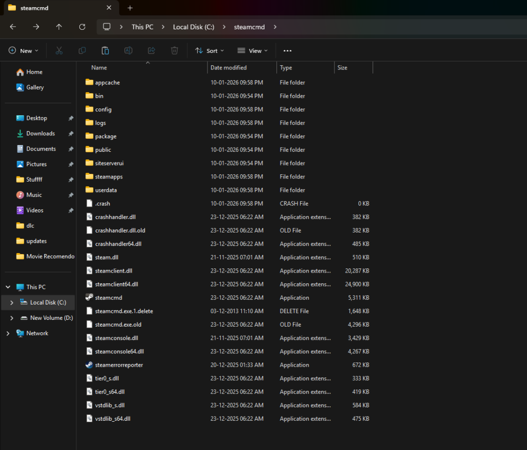 - Crea una cartella e dagli un nome steamcmd ed estrai SteamCMD.zip in quella cartella.
