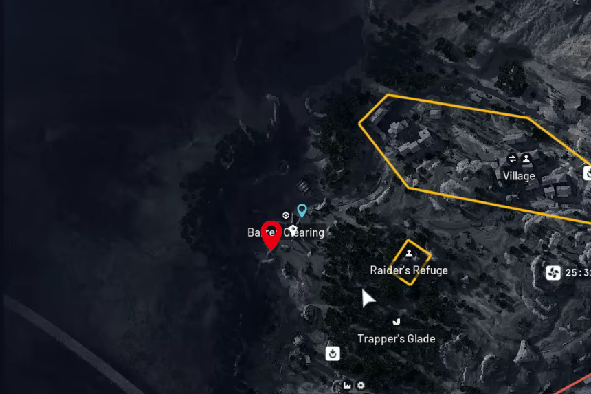 Il primo passo nella missione “With A Trace” è capire chi ha abbattuto le macchine ARC nella radura sterile nell’area del cancello blu. Troverai questo posto a ovest del Rifugio dei predoni nella regione della foresta.