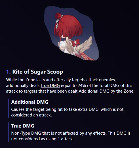 Sebbene le abilità True Damage siano diventate più comuni, Eidolon 1 di Tribbie rimane il più forte. Questo perché non solo infligge Danni Veri, ma prende di mira anche con precisione il nemico con gli HP attuali più alti (di solito il boss). Soprattutto se combinato con abilità che eccellono nel danno multi-bersaglio, come Netherwing di Castorice o Eidolon 1 di Mydei, può infliggere un danno vero estremamente elevato al boss.