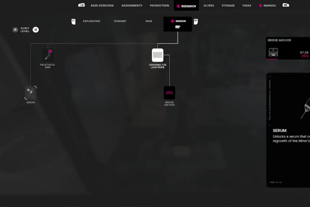 Ad un certo punto del gioco, il minatore perde il braccio e spetta a te decidere come aiutarlo. Puoi dargli un braccio protesico o provare un siero sperimentale che potrebbe aiutarlo a farne crescere uno nuovo. Quando Jan Miner inizia a riprendersi, Jan Scientist ti darà la possibilità di ricercare un braccio protesico per lui. Ma se parli con Jan Technician, sbloccherai un altro percorso di ricerca che ti permetterà di creare un siero speciale che può aiutare Jan a far crescere un nuovo braccio. Una volta scelto il tuo percorso, dovrai creare il braccio protesico o il siero per completare il processo.