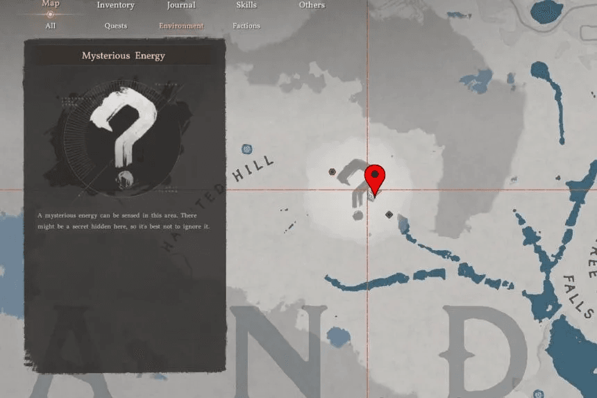 Per raggiungere le Rovine di Haunted Hill, dovrai viaggiare verso est dal Nexus dell’Abisso di Haunted Hill. Puoi trovare il simbolo dell’Energia Misteriosa sulla tua mappa; è esattamente dove devi andare per iniziare la ricerca. Il tuo primo compito è raggiungere l’Energia Misteriosa sulla mappa, proprio in alto tra le lettere “N” e “D”.