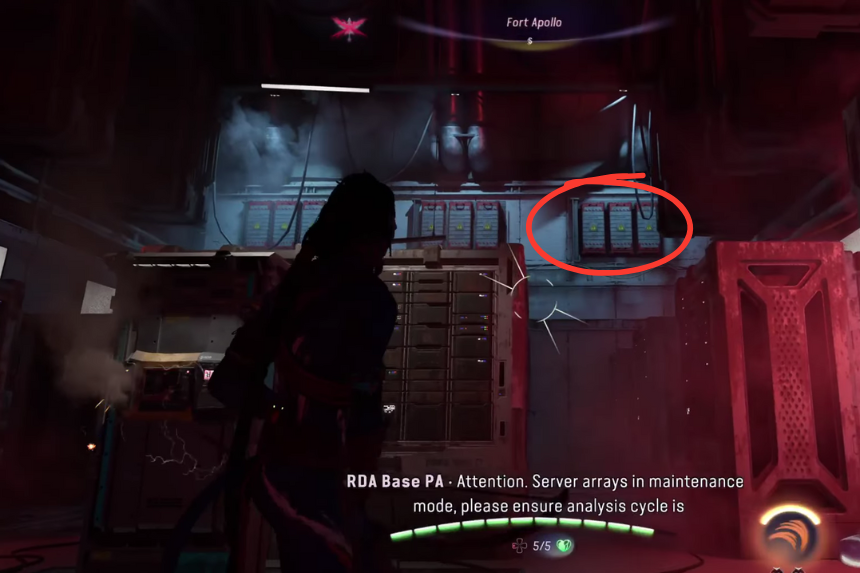 Dovrai entrare a Fort Apollo durante la missione e violare le forze di sicurezza. Entra nella sala di controllo e hackera il computer. Riceverai molte informazioni RDA dalla sala di controllo. Inserisci il primo da sinistra. Avrai bisogno di una carta di accesso a Fort Apollo per entrare nel forte.