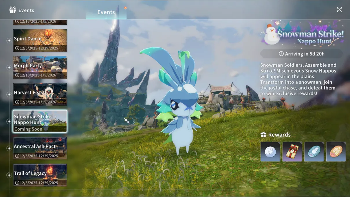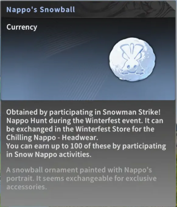 Questa è una modalità speciale che richiede una stretta collaborazione tra i giocatori. I “Maliziosi Snow Nappos” appariranno nelle pianure, generandosi ogni 10 minuti. La chiave per sconfiggerli è che i giocatori devono trasformarsi in un pupazzo di neve per infliggere danni efficaci (gli Snow Nappos sono immuni alle abilità degli avventurieri). Una volta entrati in combattimento, gli Snow Nappos si scioglieranno gradualmente nel tempo; continua a combattere per ottenere la vittoria e guadagnare “Palla di neve di Nappo”. Questo oggetto può essere scambiato nel negozio Winterfest con l’esclusivo “Copricapo Chilling Nappo”.