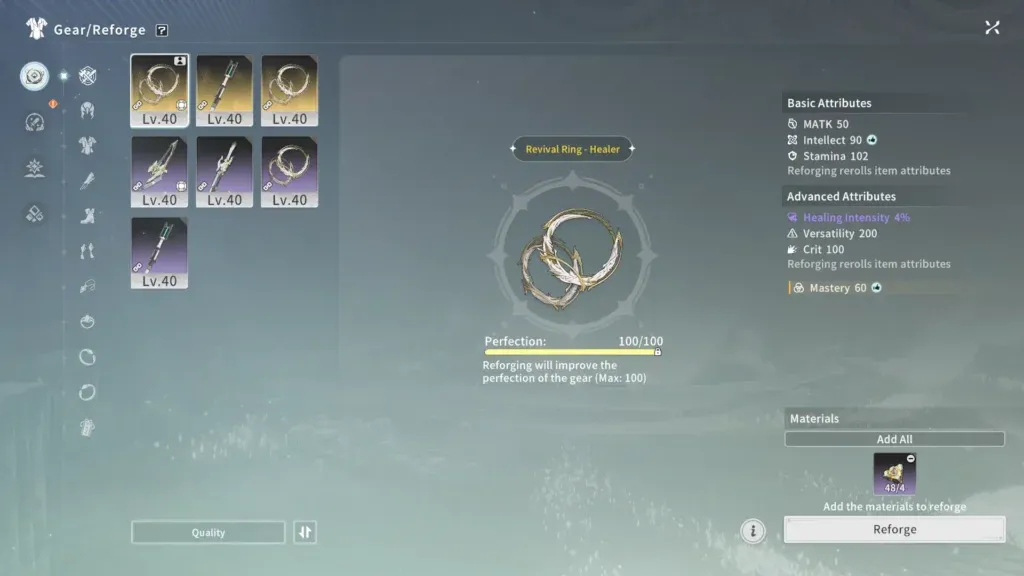 - Il gioco include diversi slot per equipaggiamento: armi, armature, accessori, immagini e oggetti di riforgiatura e potenziamento.