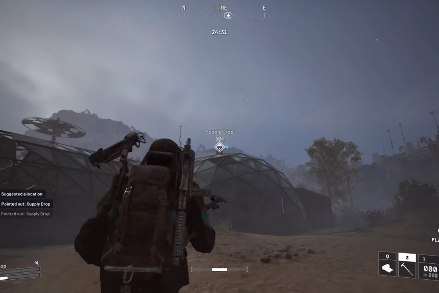 Quando trovi una stazione di chiamata dei rifornimenti, parla con essa per attivare la consegna dei rifornimenti. Il tuo personaggio lancerĂ un razzo in aria, che farĂ cadere un contenitore in un pallone.