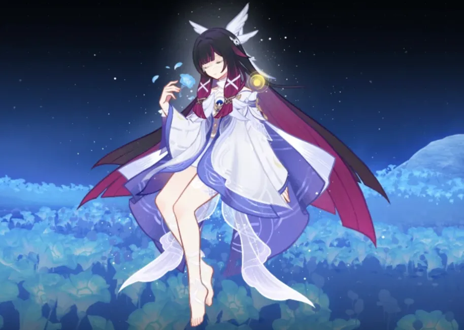 Esplosione Elementale (Q): Spiega le sue ali, apre gli occhi e libera un Dominio. All’interno del Dominio, l’intera squadra guadagna (?)% Bonus DAN reazione lunare. (Un livello definitivo di “Devastazione planetaria”).