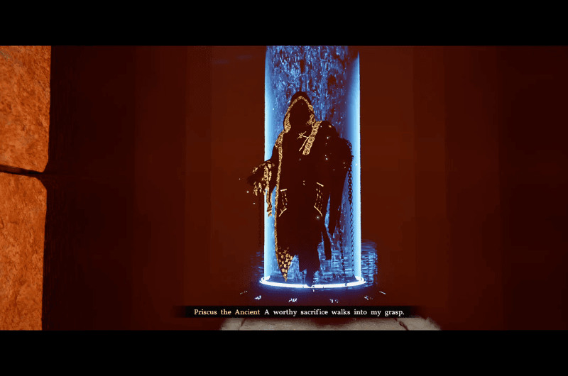 Scendi attraverso il buco a terra e raggiungerai una stanza con a teletrasporto. Il boss litiga con Prisco l’Antico si attiva quando provi ad entrare nel teletrasporto.